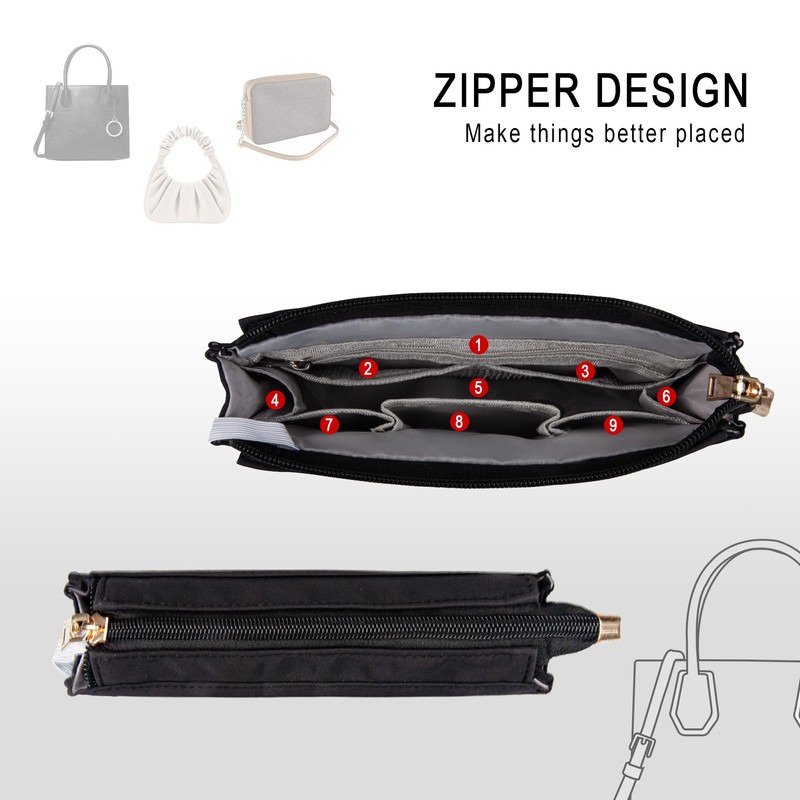 Vercord Purse Organizer Insert with Zipper for Women Hobo Handbags Shaper Insert 12 Pockets Bag Black Small