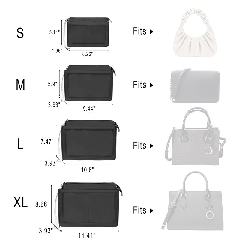 - Small and medium sizes are suitable for various shoulder bags, crossbody bags, hobo bags and other small bags, while large and extra large sizes are suitable for storage in tote bags, handbags