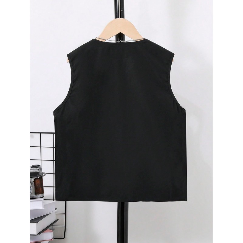 Verdusa Boy's Pocket Front Buckle Sleeveless Cargo Vest Jacket Black 10Y
