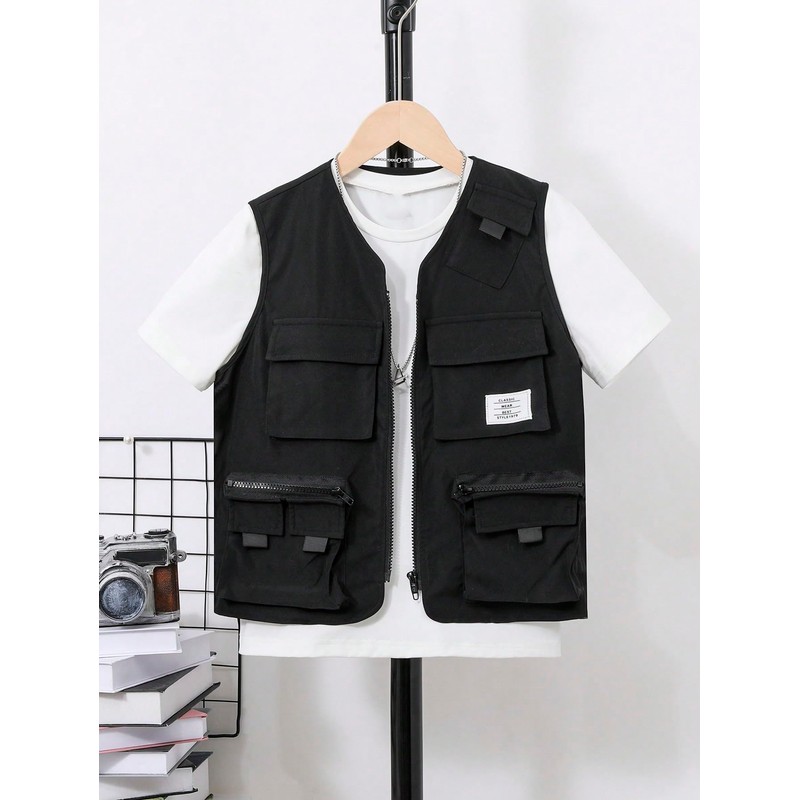• Feature: Sleeveless, Buckle Belt, Pocket with Zipper, Letter Patched, Travel Vest