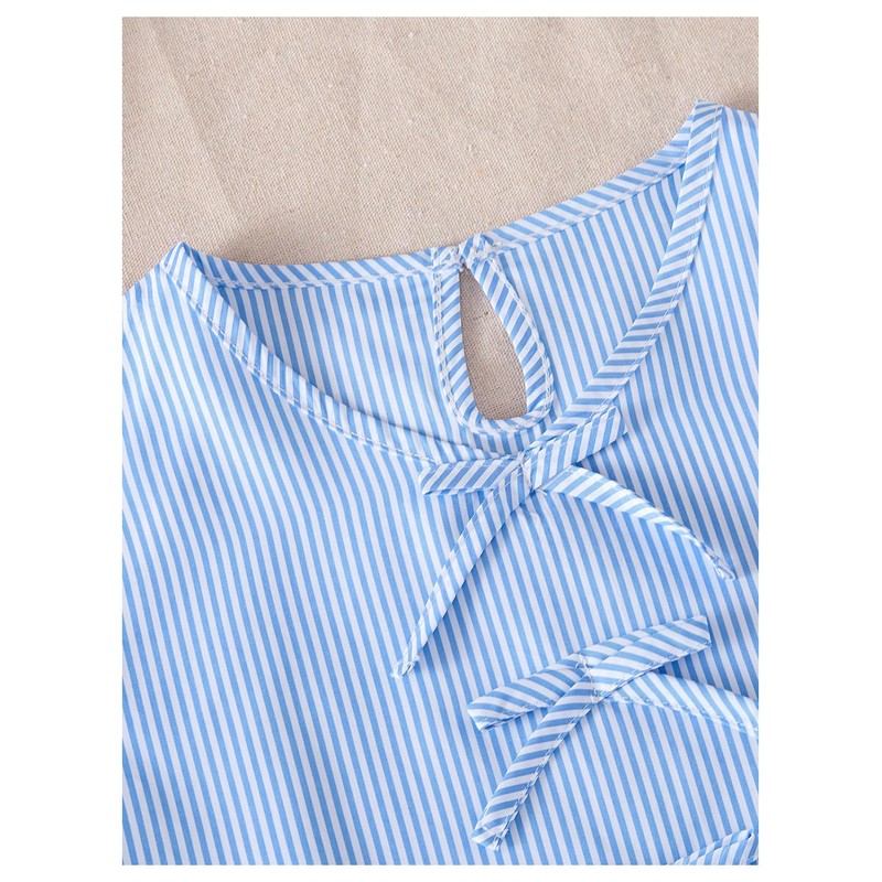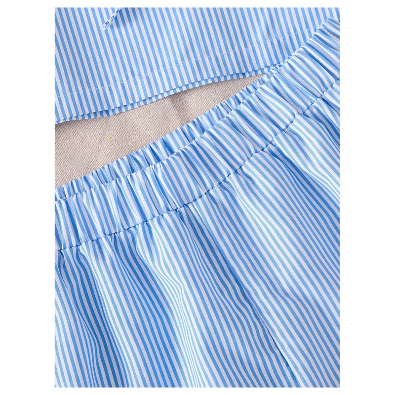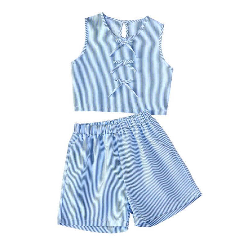 Verdusa Girl's 2 Piece Striped Outfits Cute Bowknot Tank Tops with Shorts Summer Clothing Set Blue 9 Years