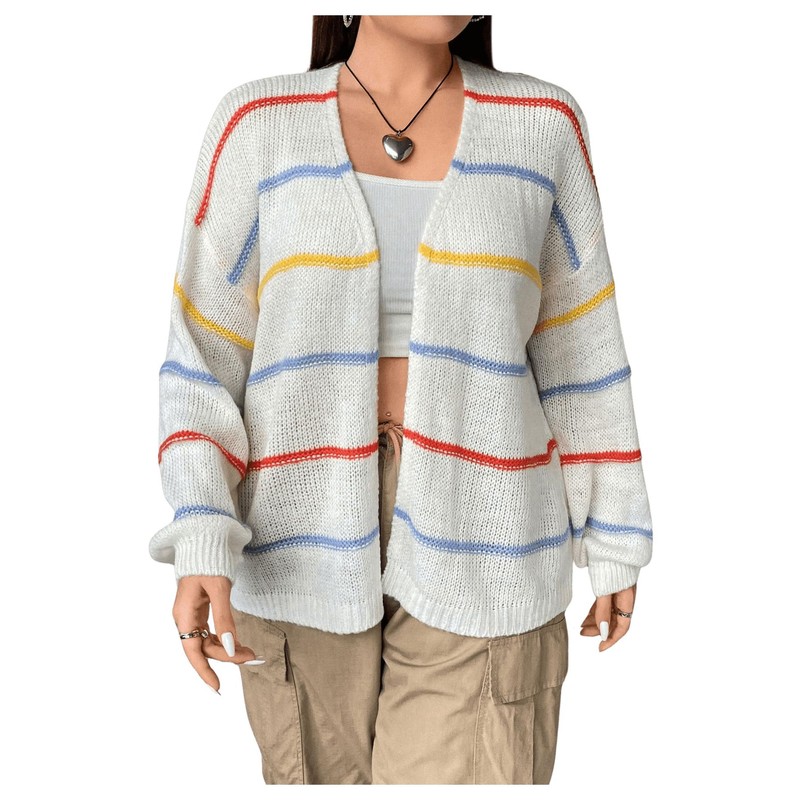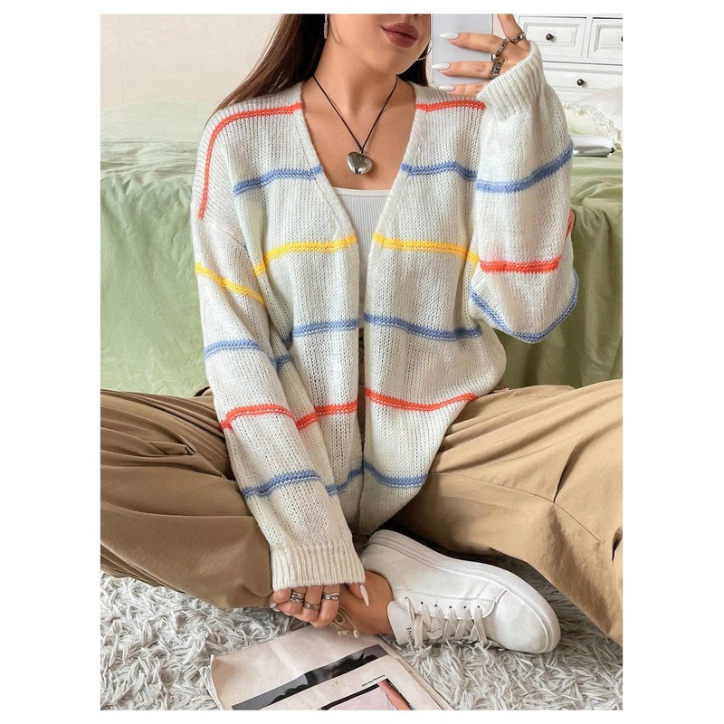 - Stripe print, ribbed hem, casual cardigan sweater outerwear