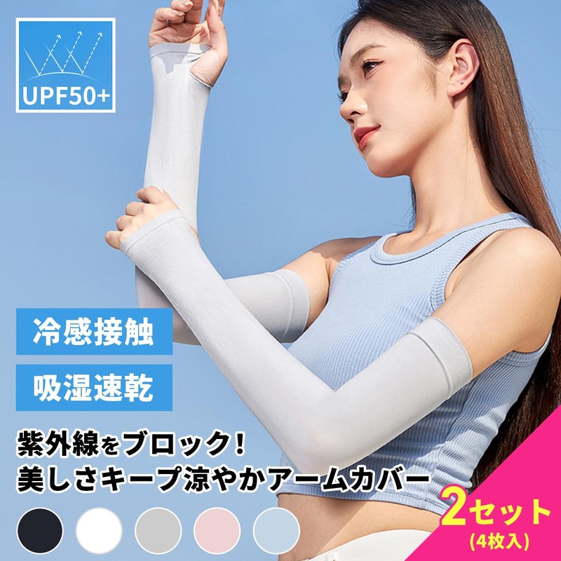 VERISSY Arm Cover, Cooling Sensation, Women's, 4 Pieces, Sun Protection, Arm Sleeves, UV Protection, 2 Set, Cool, Ultraviolet Rays, With Thumb Holes, For Summer, UPF50+ Supporter, Plain, Elastic Arm