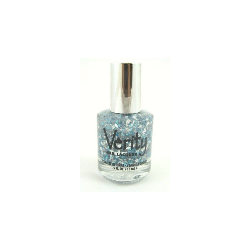 - Glitter topper with large metallic silver diamond square glitter mixed with small aqua blue round glitter and silver micro-glitter in a clear base