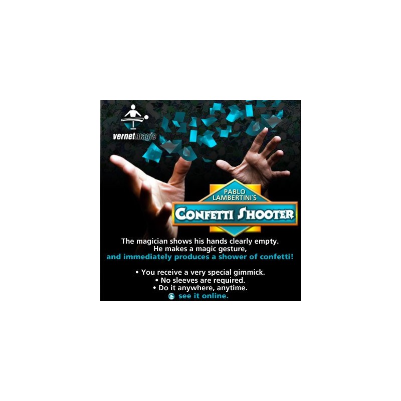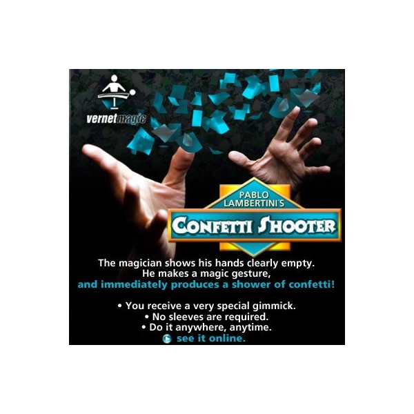 The magician shows his hands clearly empty. He makes a magic gesture, and immediately produces a shower of confetti!