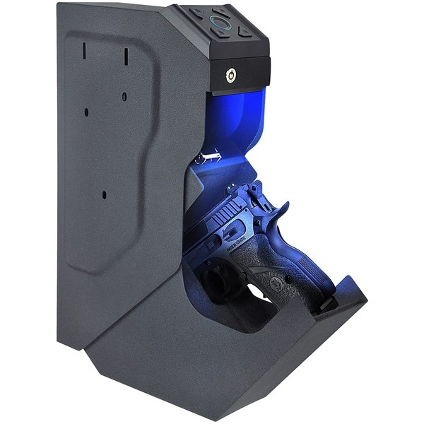 Gun Safe Biometric Quick Access Handgun Safes for Pistols Bedside Fingerprint Pistol safe Nightstand Smart Gun Safety Wall Mount Desk Keypad Key