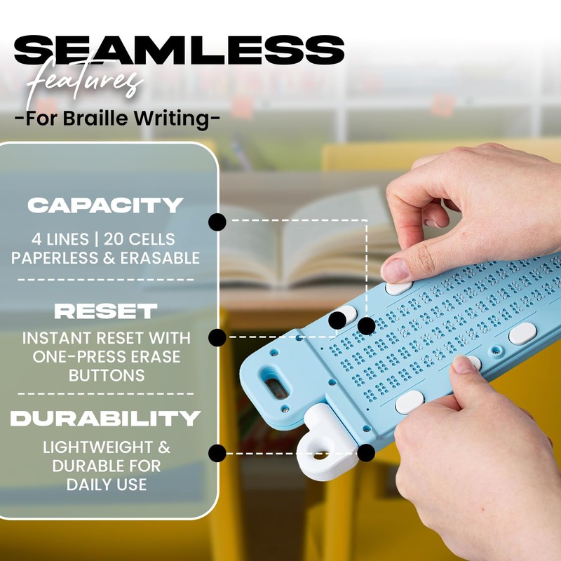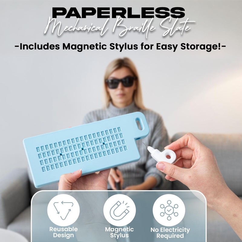 Versa Paperless Braille Slate – Compact & Erasable Braille Writing Slate with Magnetic Stylus, 4 Rows of 20 Cells, Portable for Learning and Everyday Use