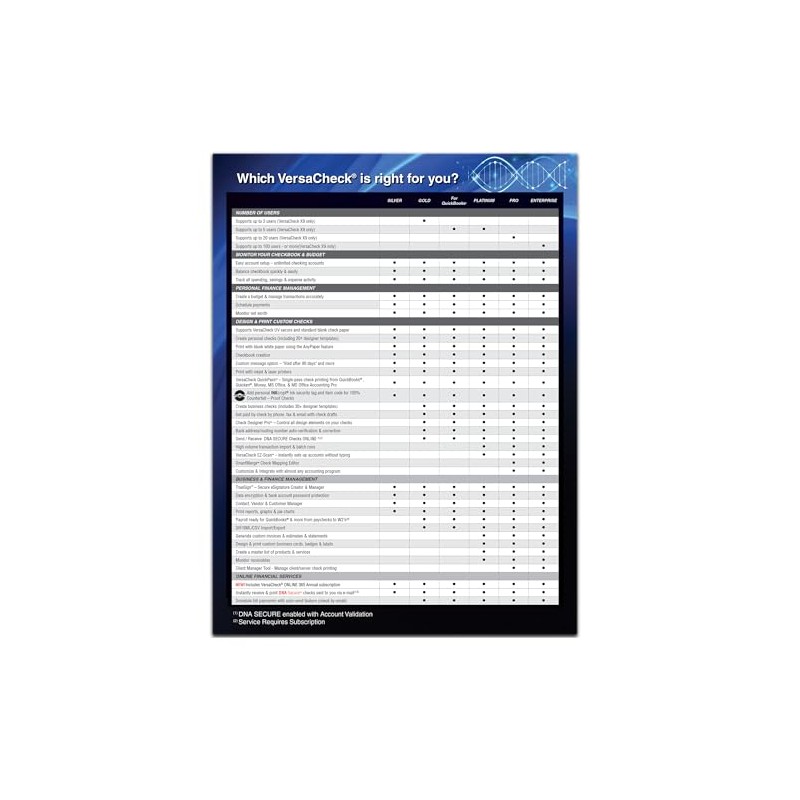 - BONUS - Includes 1-year subscription to VersaCheck ONLINE – Use any mobile or desktop browser to create, print, send & receive checks the smart way - anytime, anywhere!