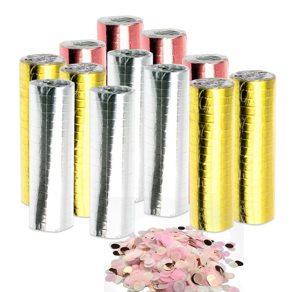 Versatile Streamers for Birthdays - Iridescent 12 Rolls Streamers in Gold, Silver and Rose Gold, Includes 10 g Cherry Blossom Pink Confetti