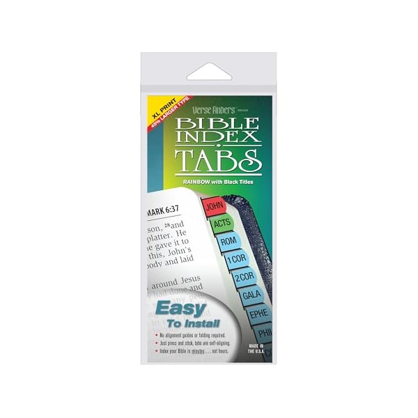 - XL PRINT RAINBOW Verse Finder Bible Index Tabs are Easy to Install, No Alignment Guides or Folding Required