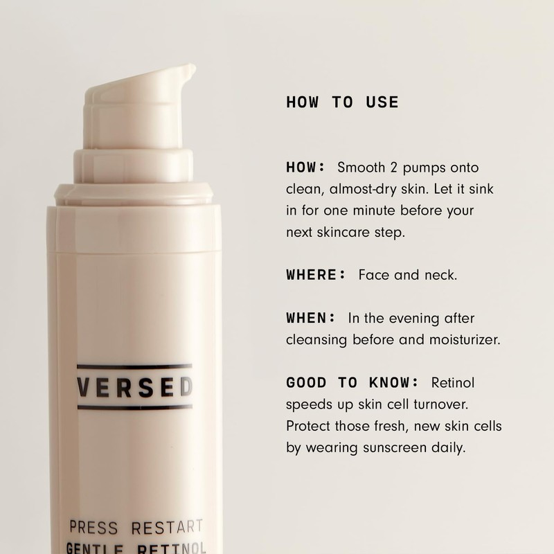 Versed Press Restart Gentle Retinol Serum - Bakuchiol Retinol Alternative Anti-Aging Serum for Even Skin Tone, Fine Lines and Wrinkles for Sensitive Skin - Vegan (1 fl oz)