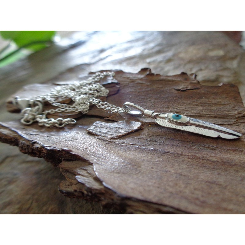 VERSILBERTE BOHO FEDER EMAILLE MAGISCHES AUGE einmalige Kette