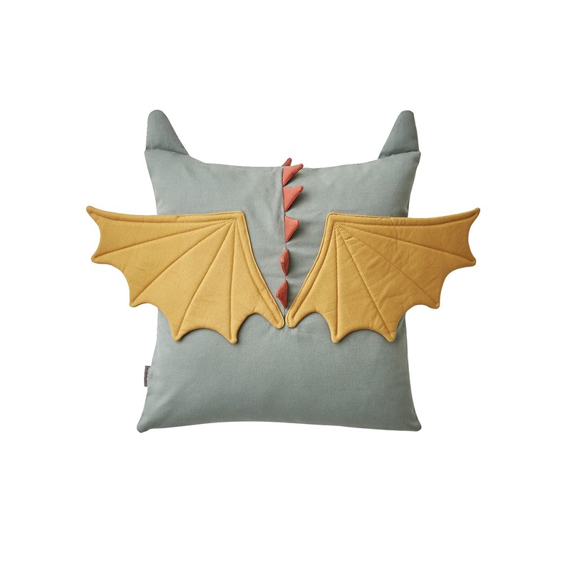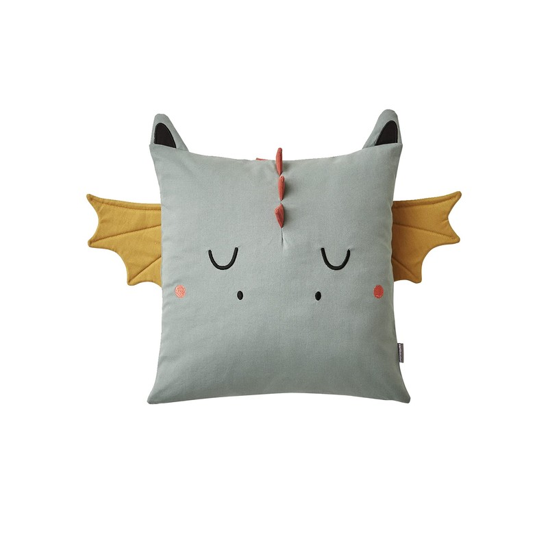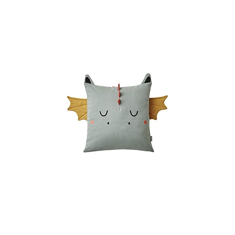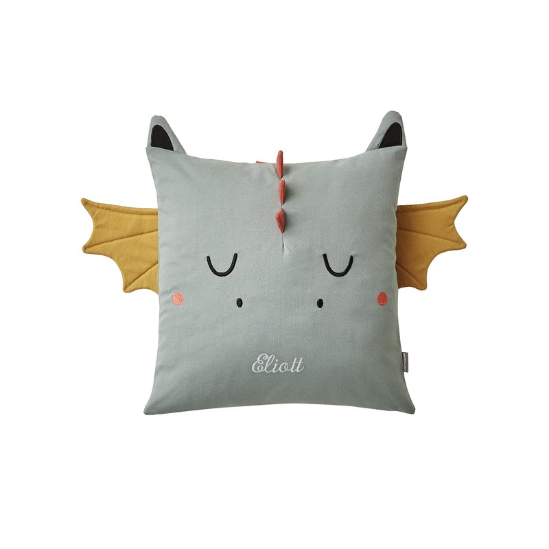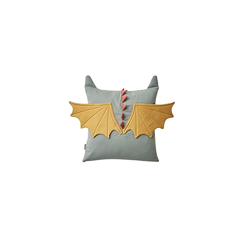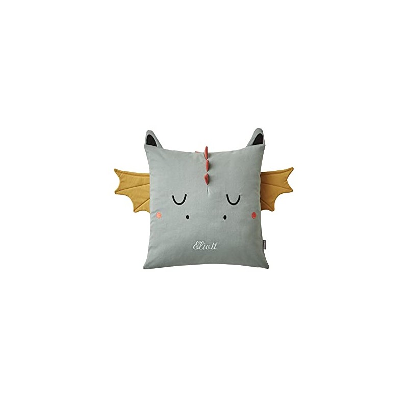 VERTBAUDET Dragon Cushion, Medium Green Plain with Motifs, One Size