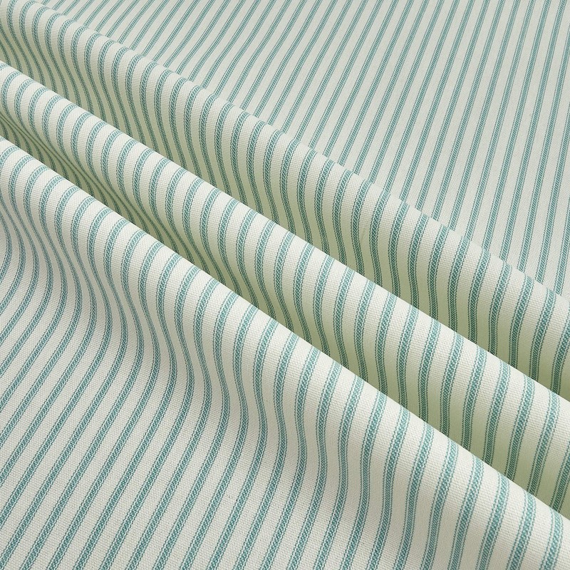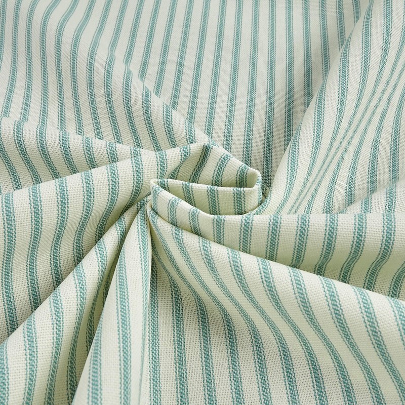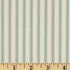 Vertical Ticking Stripe Cotton Duck Ivory Cerulean Aqua, Fabric by the Yard
