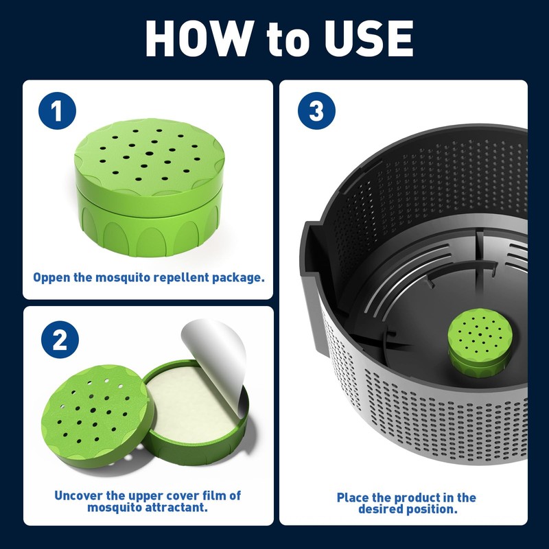• 【Easy to Use】: Just open the lid, peel off the film, and replace the lid to position it anywhere mosquitoes may be present.