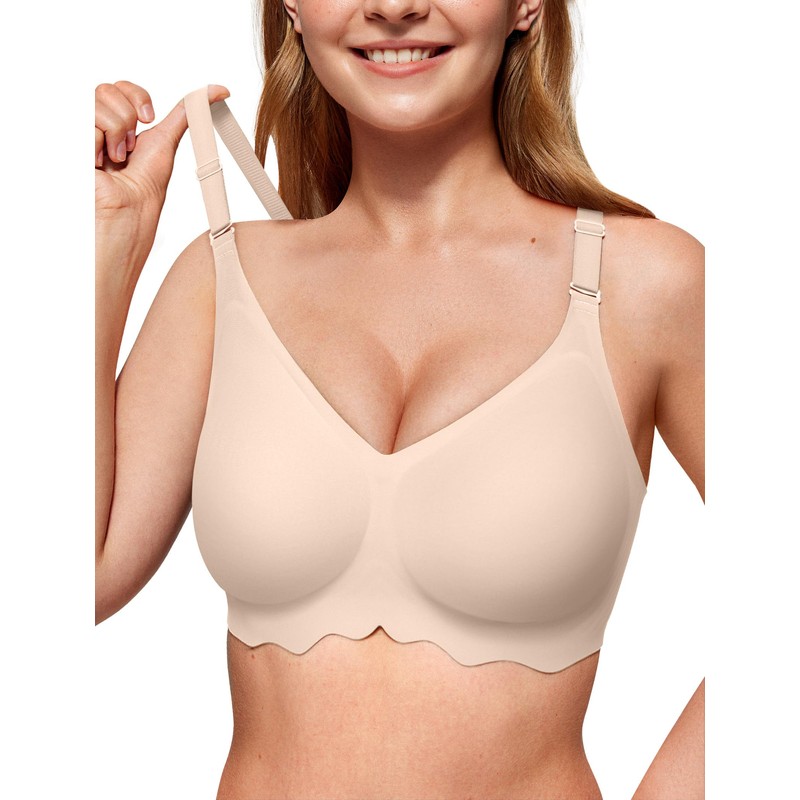 - Comfortable & Soft: The women's seamless bra is buttery soft, stretchy, and breathable, keeping you comfy all day long. A smooth and seamless fit under clothing. With its V-neck design and scalloped underband, it combines style with comfort, offering a flattering shape that enhances your natural curves