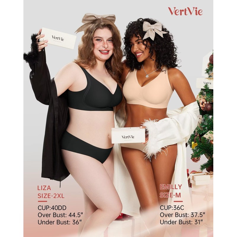 - Fit for Every Body: VertVie's padded bra is designed to provide comfort and support for every age and every stage. Available in sizes S to 2XL and accommodating cup sizes from B to DD, this seamless bra is a perfect fit for both young girls and older women. S: 34B, 34C.34D; M: 36B, 36C, 36D; L: 36DD, 38B, 38C, 38D; XL: 38DD, 40C, 40D; 2XL: 40DD, 42C, 42D