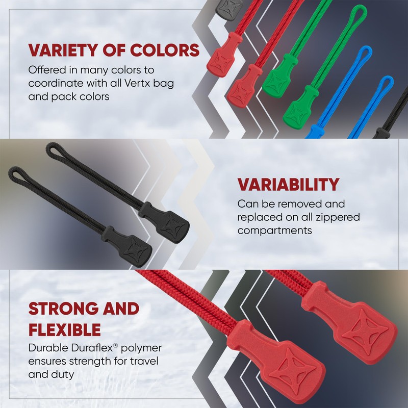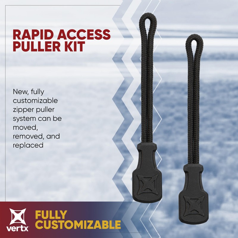 - EFFICIENT CUSTOMIZATION: Elevate your gear preparation with the Rapid Access Zipper Pull Tab Kit. This zipper puller system, paired with Vertx Rapid Access Pull Tabs, ensures a swift and personalized draw for your CCW needs.