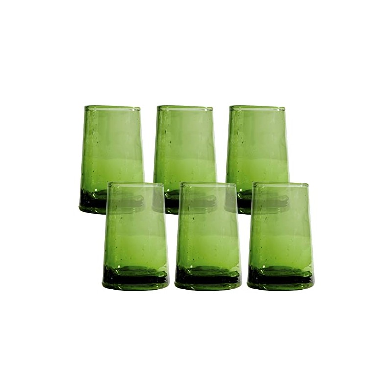 Verve CULTURE Moroccan Large Cone Drinking Glasses Handblown Drinking Glasses – Set of 6, Green | 12 Fl. Oz.