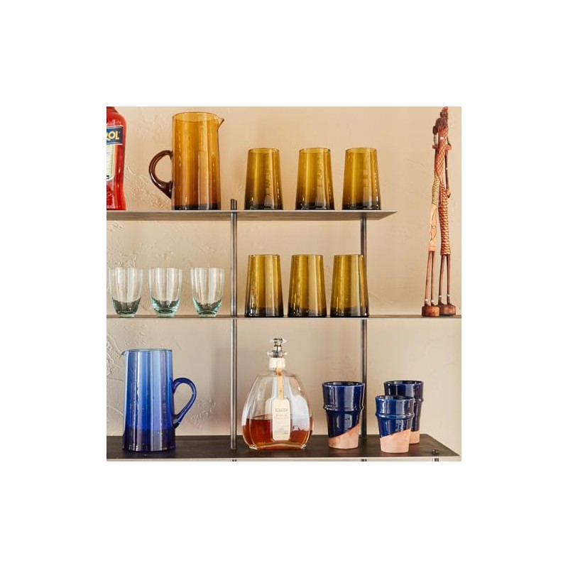 - SET OF SIX We’re including six glasses - because whether it’s tea, water or wine, nobody should ever have to drink alone! Pair these beauties with our Small Cone Glasses for an eclectic look, and don’t forget our matching Moroccan Cone Jug! Dishwasher safe. Please note: handblown glass is sensitive to drastic temperature changes.