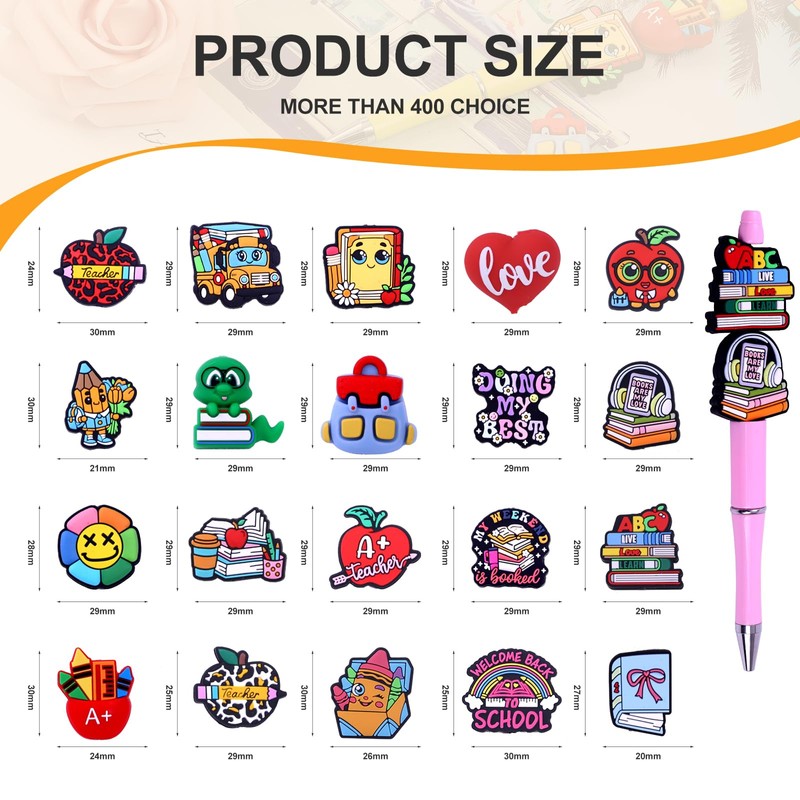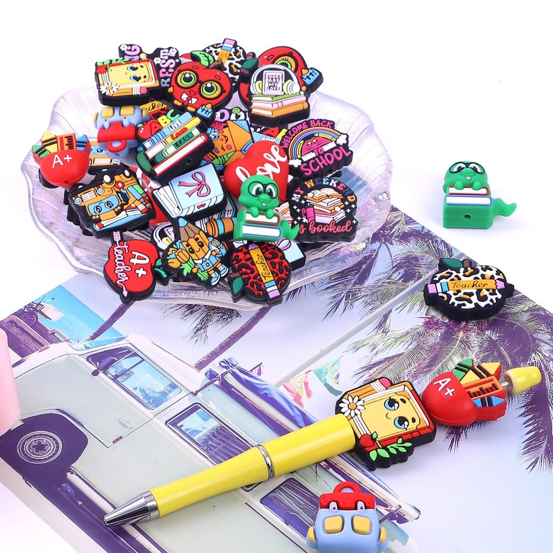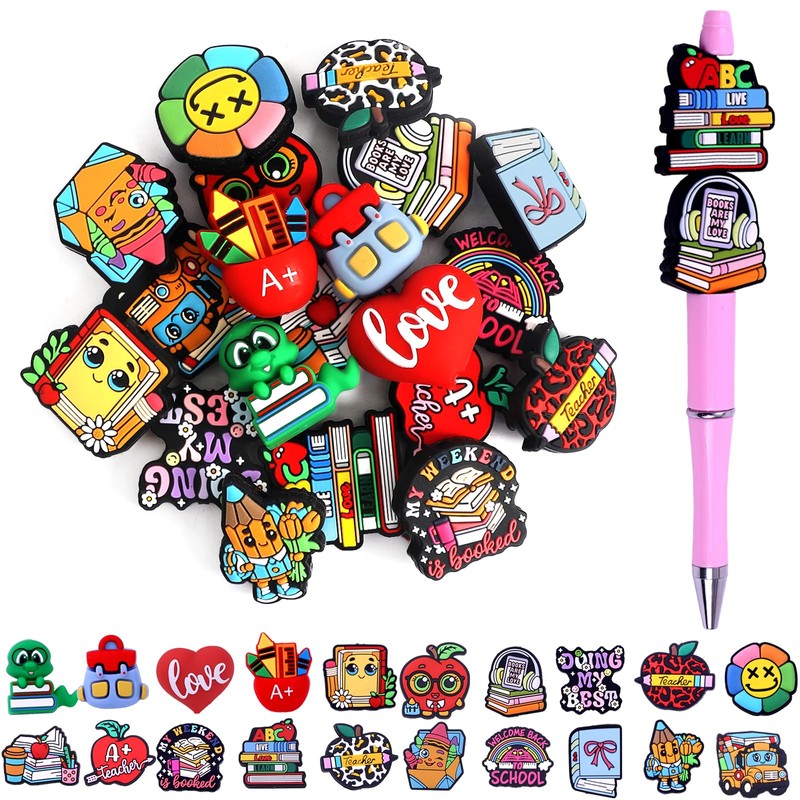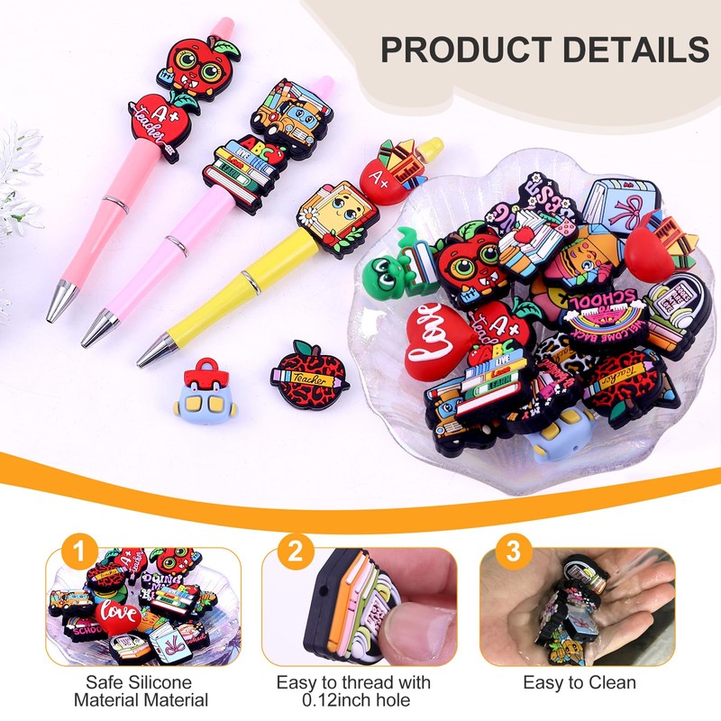 VervelaLibre 20pcs Teacher Focal Beads for Pen Back to School DIY Silicone Beads Beaded Pen Supplies Study Theme Silicone Beads for Keychain Making Crafts Decoration Bracelet Necklace (Teacher)