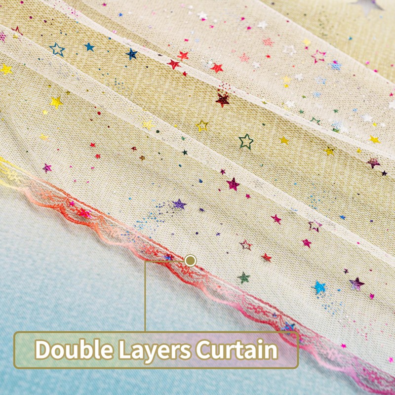 - Double Layer Design: 2-in-1 design featuring a rainbow ombre blackout layer and a white sheer layer white foil print stars. Effectively blocks 80%-90% of sunlight and UV rays while maintaining a beautiful aesthetic. Perfect for creating a cozy and private space.