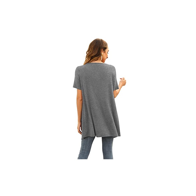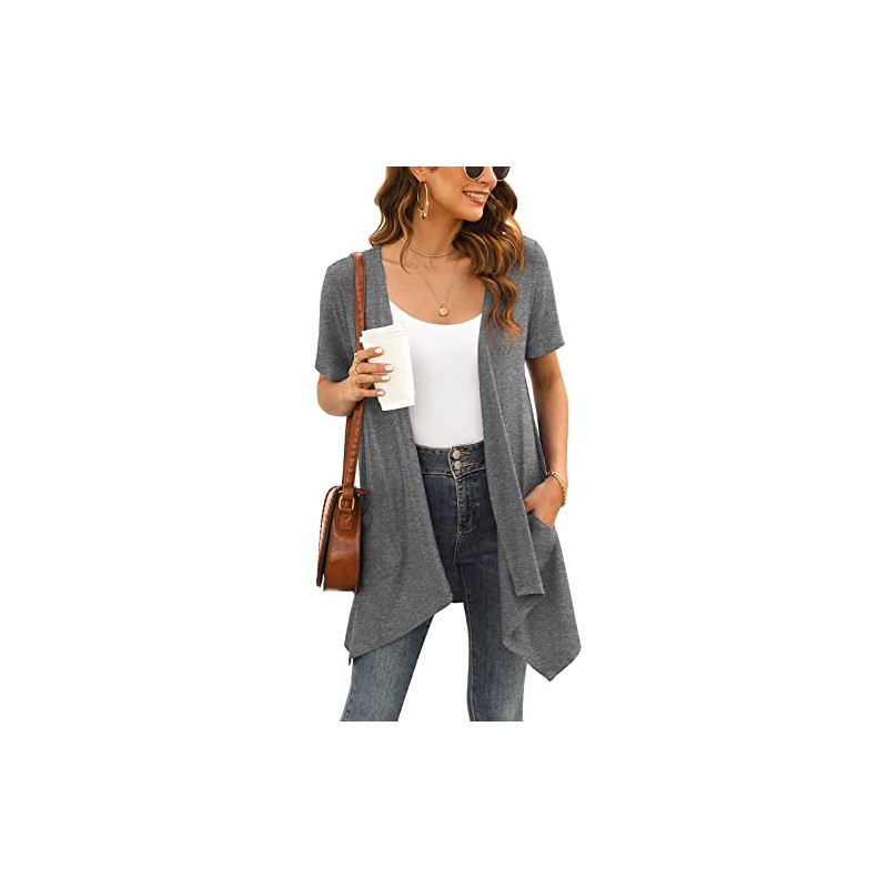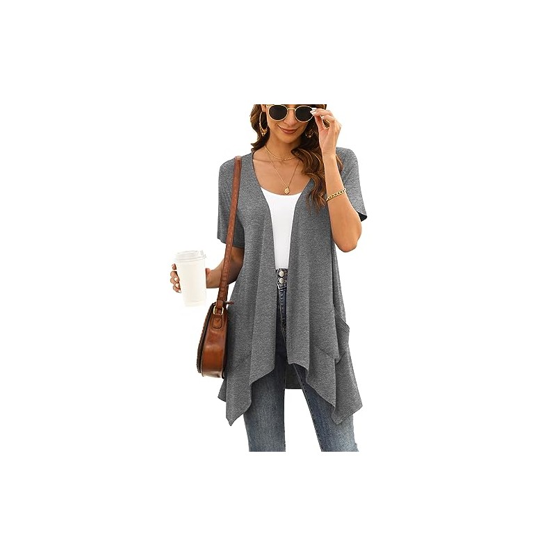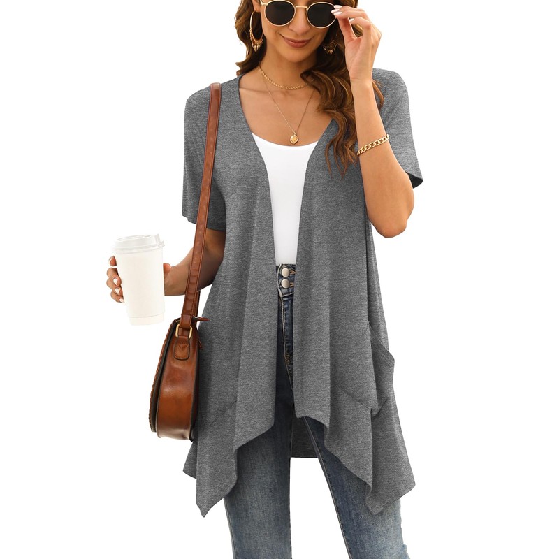 Veryoung Women's Short Sleeve Open Front Lightweight Summer Cardigan Grey Vest Kimono Jackets with Pockets Drape Shrug Top High Low Hem 2023,XL