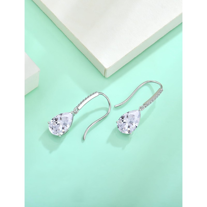 - Earrings Dimension-Women Birthstone Teardrop Earrings,height 1.14"(29mm);set with 16pcs 1.25mm round-brilliant-cut cubic zirconia and 2pcs pear-cut diamond