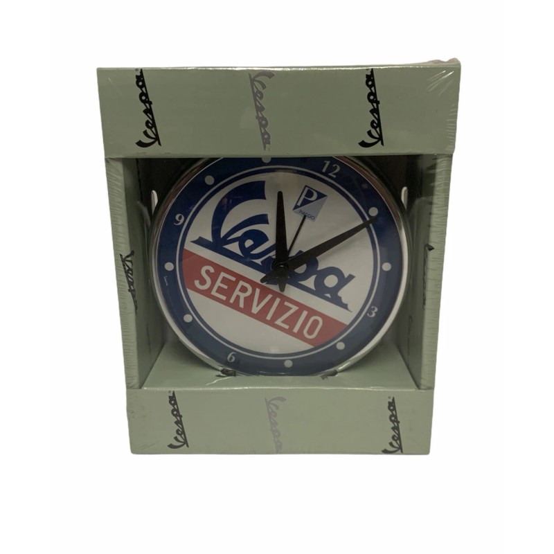 Vespa New Vespa Servizio Blue Wall Clock / Fridge / Desk Retro Look Collectible 4 1/4”