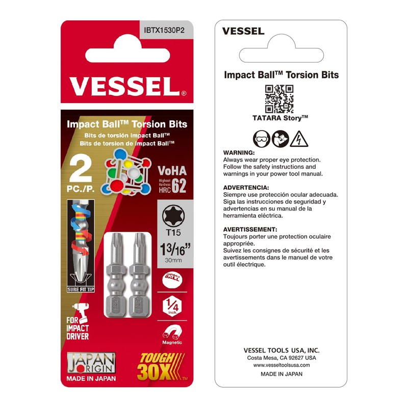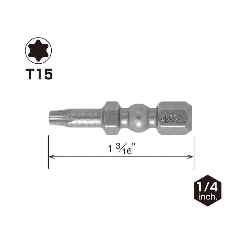 VESSEL Impact Ball Torsion Bits T15X30 2PC (Carded)