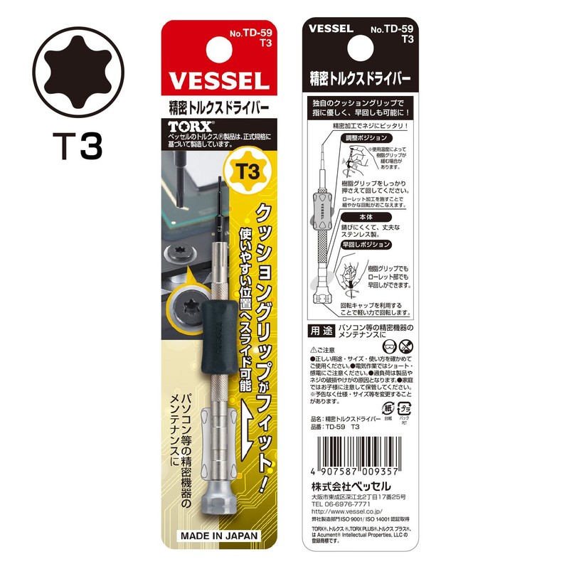 ベッセル(VESSEL) 特殊精密ドライバー (トルクス) パソコン・スマートフォン修理用 TD-59 T3