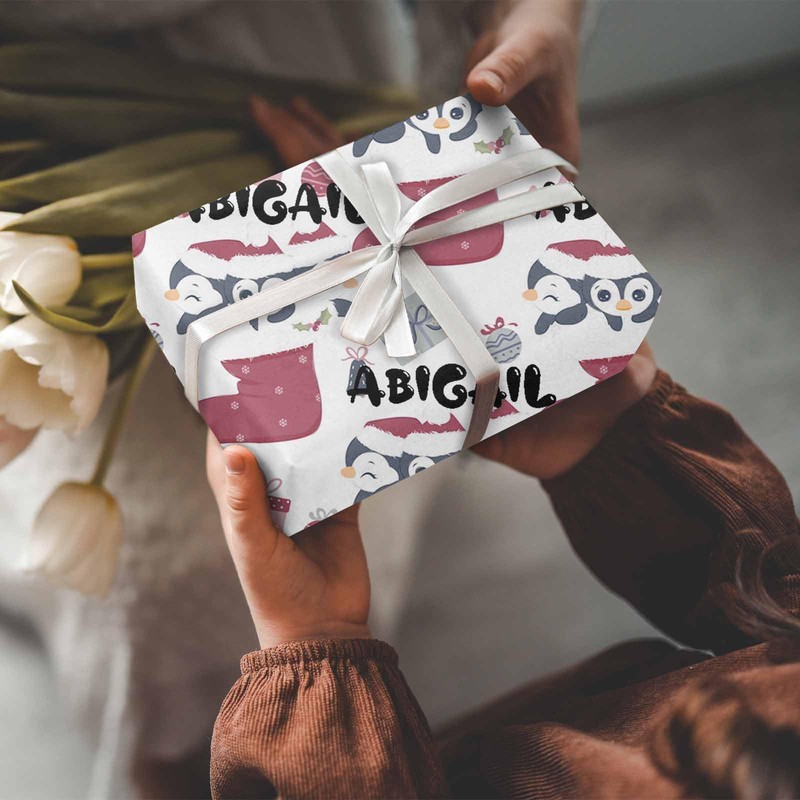 Vesserd Custom Christmas Packing Paper for Kids, Customization Sock Penguin Tissue Paper for Baby Shower Birthday, Customized Wrapping Paper for Friend Memorable