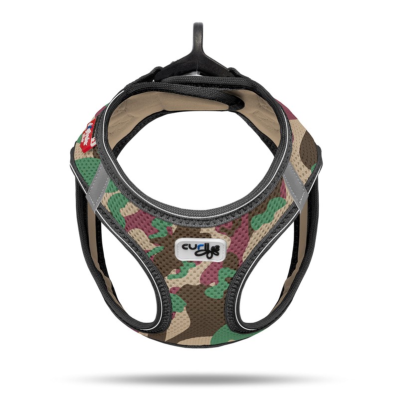 - Box contents: curli Vest Harness Air Mesh dog harness (lightweight step-in harness, high air permeability, material: stretch air mesh) incl. DogFinder ID. Size: L. Camo.