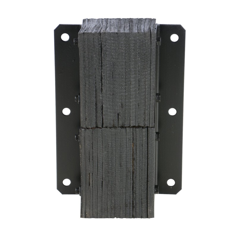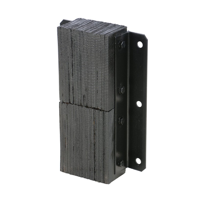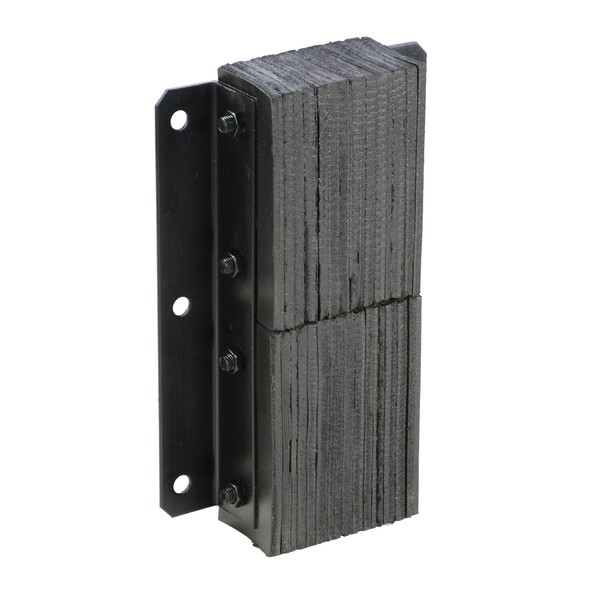 This Vestil V-1120-4.5 vertical loading dock bumper is 11" in width, 20" high, and is used to prevent damage by a vehicle to a dock or building. It has rubber padding with a depth of 4-1/2" for elasticity and resistance to impact. It is fabric-reinforced for strength and dimensional stability. This bumper consists of multiple pads made from recycled truck tires which are layered for more cushioning than a solid piece of rubber. It has steel structural angles on both ends for strength and durability and is held together with 3/4" steel tie rods. The steel components are painted for resistance to corrosion. It can be welded to the dock or bolted onto the dock for easy installation and has four 13/16" bolt holes.