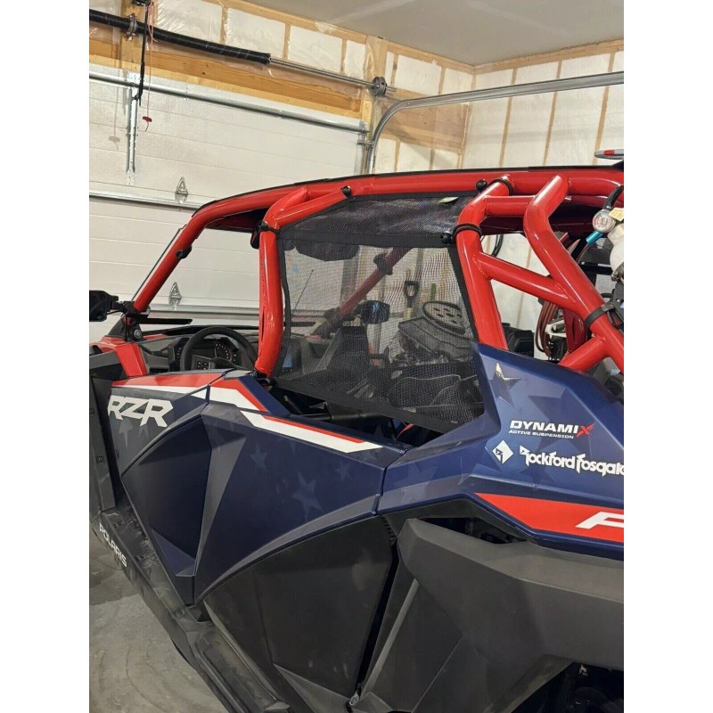 Polaris RZR Pro XP4 Rear Nets - Help protect your passengers / pets from branches, mud and rocks. These are built to withstand the hobby! 🎖️ ALL Materials and Labor are from this great country. Only net mfr we are aware of that can say MADE IN THE USA!! 🎖️ Custom Heavy Duty Bungees are the strongest bungees being offered by anyone Period!! - No cheap Chinese bungees here. 🎖️ Double sided webbing along perimeter seams and another through the middle of the net provide structure and rip stopage! 🎖️ Easy Load/Unload system - simply unhook the front 3 bungees and let the net hang - then load/unload- Its fast and works the best - takes less then 10 seconds without unhooking a bunch of clips or bungees. 🎖️ We use an American fiberglass mesh that is PVC dipped - its incredibly rip proof with anti mildew resistance. Also a great source of shade. 🎖️We donate a portion of every sale to 2 Veteran organizations we are involved with - Wounded Warrior and the One Tribe Foundation - Thank you for helping our nations veterans. Includes one pair of nets + all necessary bungees. |