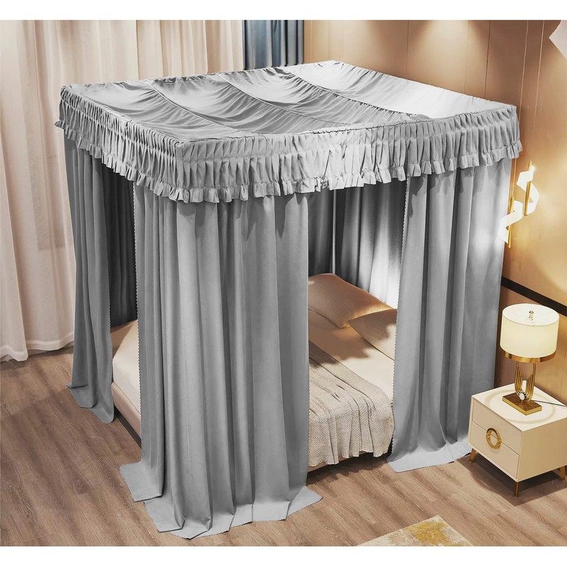 VETHIN Elastic Roof Style Four Corner Post Princess Bed Canopy Curtains Cozy Breathable Tent Canopy Mosquito Net for Girls & Adults Bedroom Decoration (Grey, 59-64" W*82" L*82"*H/(Queen))
