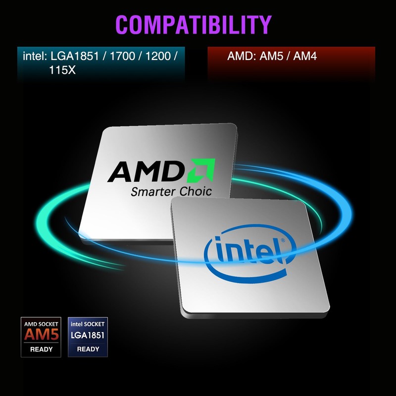 - Wide Compatibility: Intel LGA 1700/1200/2066/2011-3/2011/1156/1155/1151/1150, AMD AM5/AM4/AM3+/AM2+/FM2+/FM2. (Note: No AMD backplate in the package, The AMD must be installed with the original bracket of motherboard)