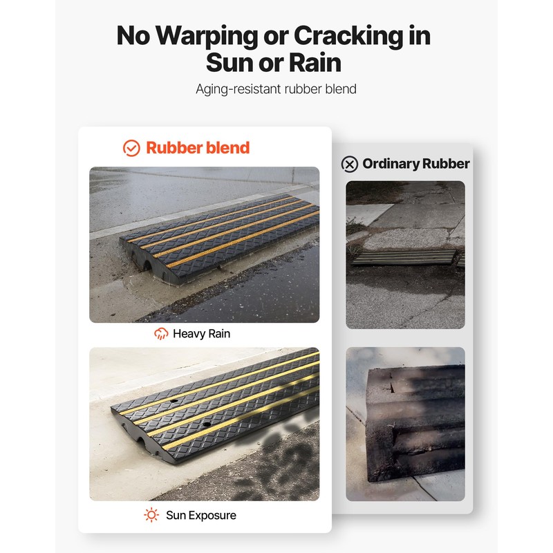 • Double Anti-slip Protection: Drainage channels of the curbside bridge ramp quickly clear water, avoiding slipping. The textured surface boosts grip and secures cables and pipes from damage, making it secure and reliable for all-weather use
