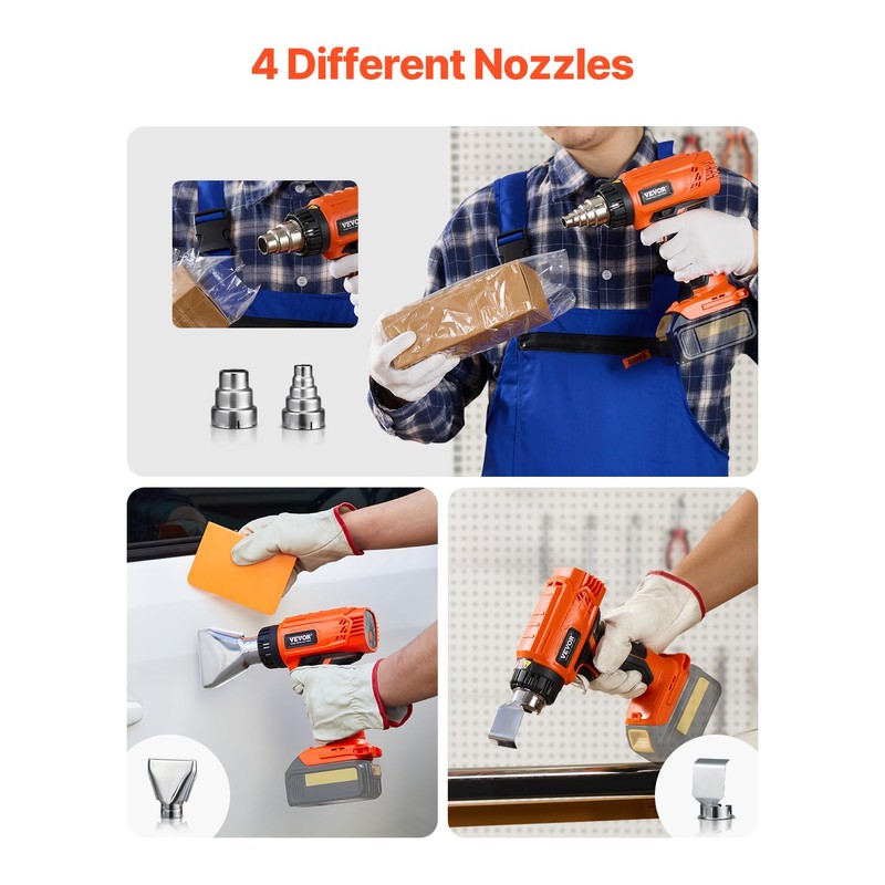 - Wide Application: Equipped with 4 interchangeable nozzles, our battery-powered heat gun is ideal for tasks like precision welding, shrink-wrapping, tubing, bending pipes, and paint removal, making it a impecable choice for professionals and DIY enthusiasts.