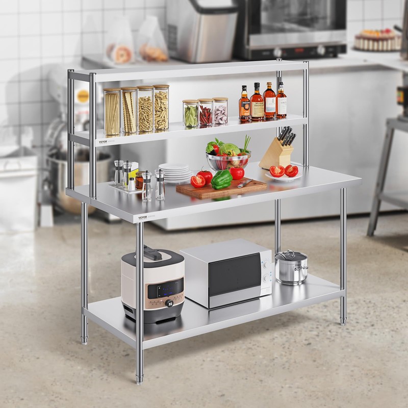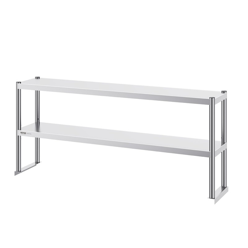 VEVOR Double Overshelf, Double Tier Stainless Steel Overshelf, 12 x 60 Inch Double Deck Overshelf, Height Adjustable Overshelf Prep Work Table for Kitchen, Restaurant and Workshop