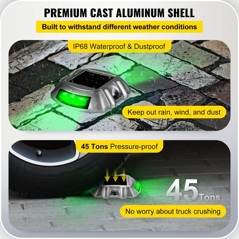 VEVOR Driveway Lights, 4-Pack Solar Driveway Lights with Switch Button, Solar Deck Lights Waterproof, Wireless Dock Lights 6 LEDs for Path Warning Garden Walkway Sidewalk Steps, LED Bright Green
