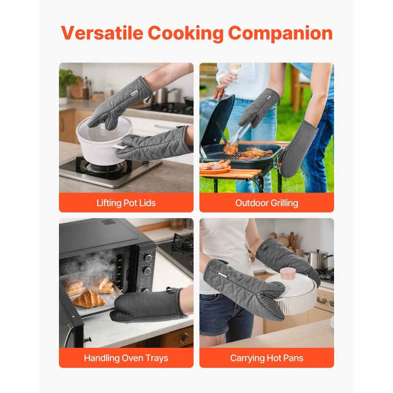 VEVOR Oven Mitts with Silicone Grip 500℉ Heat-Resistant Kitchen Oven Mitts 2 Pcs