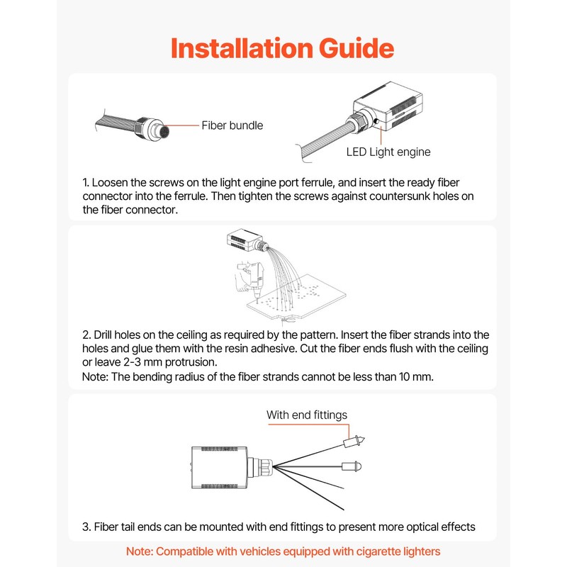 - Hochwertige Glasfaserqualität: Diese Leuchte besteht aus 150 Glasfaserkabeln mit einer Länge von 1,8 m (0,08 cm Durchmesser) und sorgt für ein sanftes, gleichmäßiges Leuchten. In Kombination mit einer 16-W-RGBW-Lichtquelle erhöht sie die Helligkeit und sorgt für einen realistischeren Sternenhimmel-Effekt.