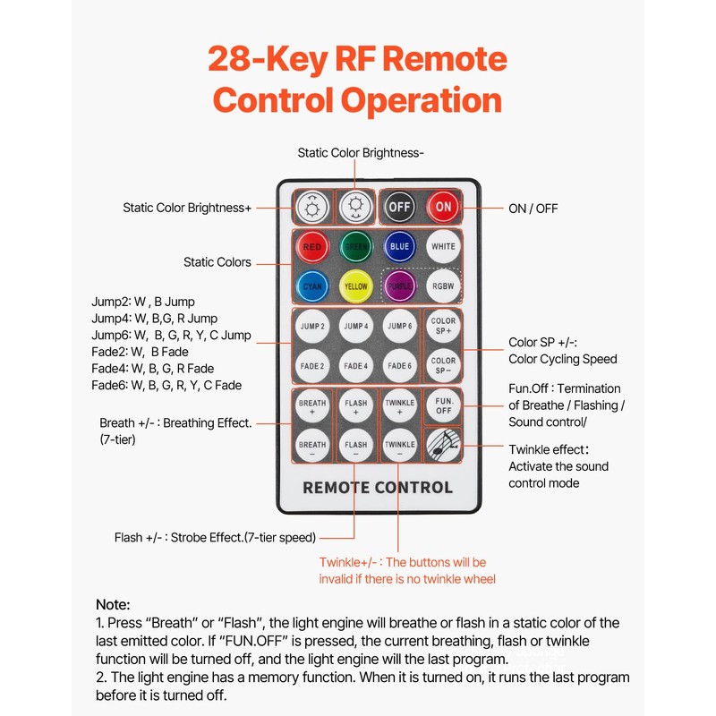 - Lebendige Farben und dynamische Modi: Mit der 28-Tasten-Funkfernbedienung können Sie ganz einfach zwischen 20 dynamischen Farbwechselmodi wechseln, darunter statische, Sprung-, Verblassungs-, Blitz- und Atemeffekte. Genießen Sie die Atmosphäre, die zu jeder Stimmung und jedem Anlass passt.