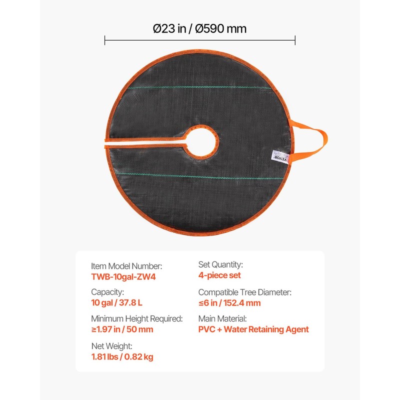 - Promote Healthy Tree Growth: With a capacity of 10 gallons (37.8L) and a diameter of Ø23 inches (Ø590mm), this tree watering bag provides broad coverage around the tree roots. The slow-release water system nourishes the tree roots directly, helping trees thrive after transplanting or in hot summer conditions.