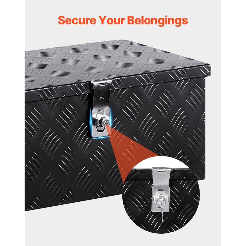 VEVOR VEVOR Heavy Duty Aluminum Truck Bed Tool Box, Stripes Plated Tool Box with Side Handle and Lock Keys, Storage Toolbox Chest Organizer for Trailer, Pickup, Truck Bed, RV, 20"x12"x9.5", Black