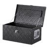 - Durable Aluminum Construction: The truck tool box is made from lightweight, sturdy high-quality aluminum alloy. Its surface features a stripe tread pattern and powder coating, offering excellent rust resistance to withstand extreme weather conditions like heavy rain, coastal salt mist, and winter snowmelt. The packaging protects the corners to prevent deformation during transport