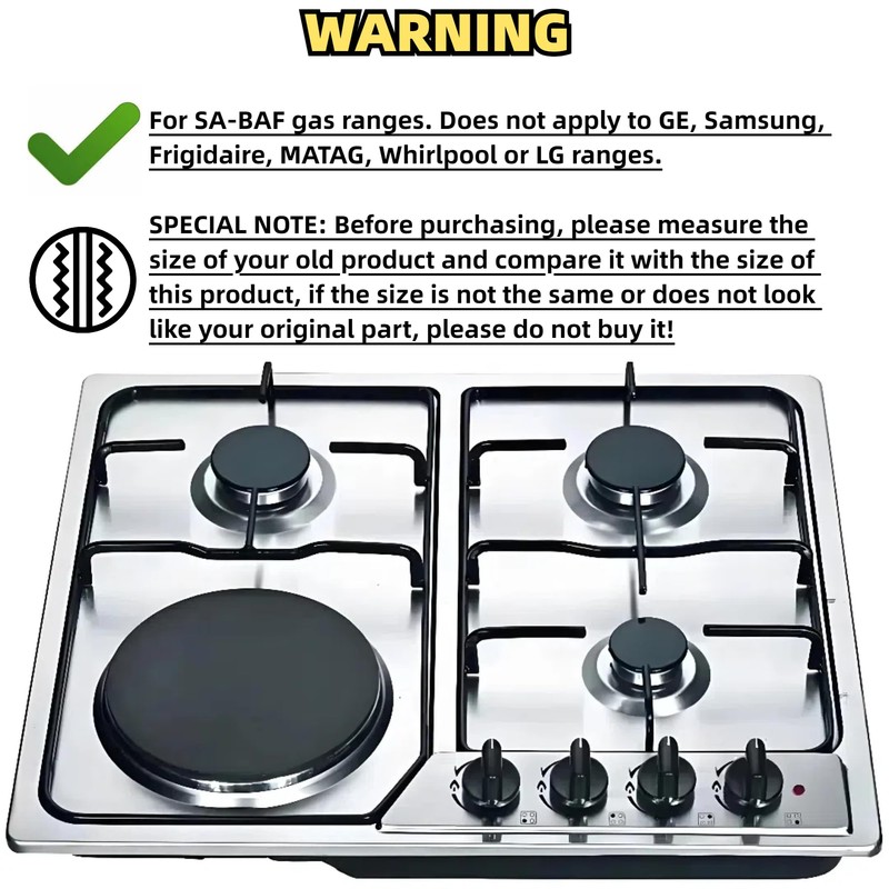 - Warning: set for SA-BAF gas stoves. Does NOT fits the GE, Samsung, Frigidaire, MATAG, Whirlpool or LG stove. (Special Attention! Before purchasing, please measure the size of your old product and compare it with the size of this product, if the size is not the same, or it doesn't look like your original parts, please don't buy it!)