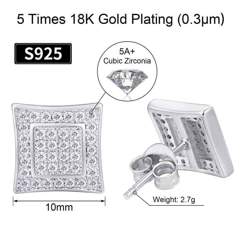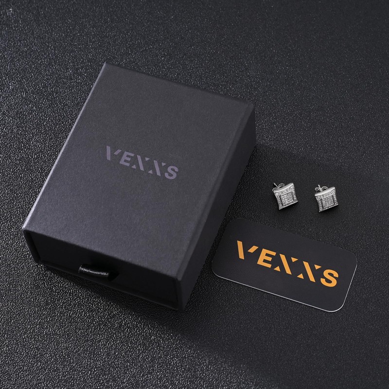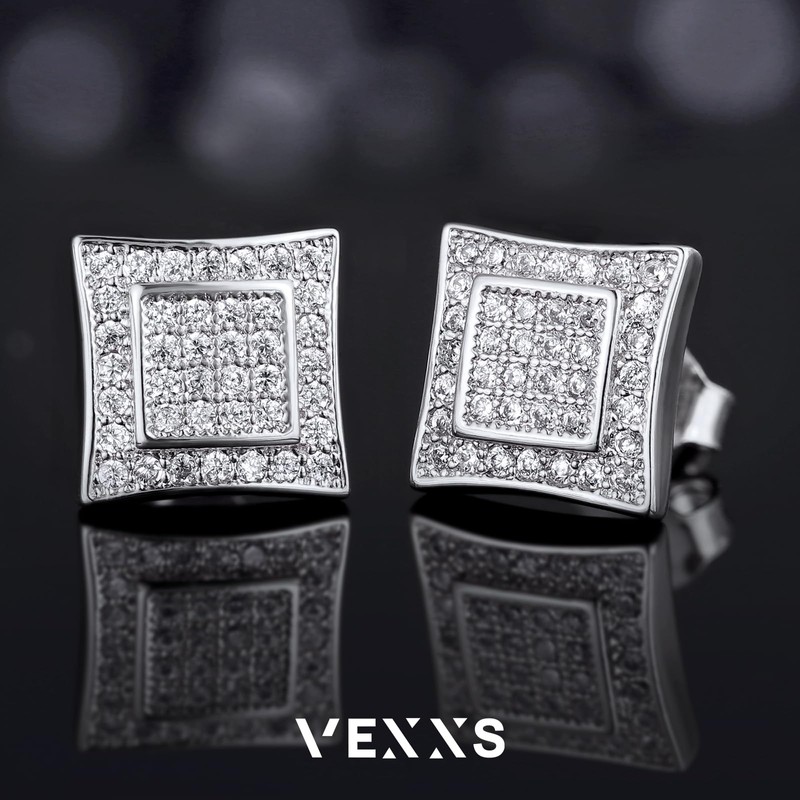 - 【925 Silver Studs】 VEXXS studs earrings are made of 925 pure sterling silver. The iced out earrings are also with 5 times gold plating.
