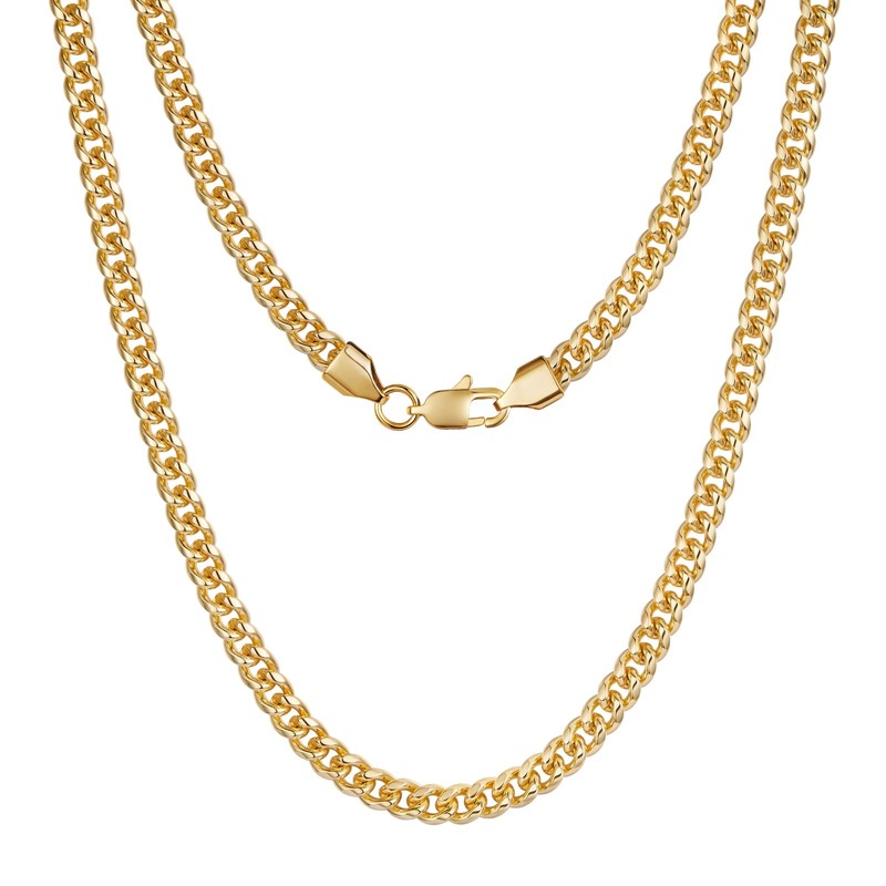 VEXXS Men's Gold Chain, 14K Real Gold Plated Miami Cuban Link Chain, Durable No Color Fading 4mm 5mm Men’s Necklace Chain (4mm-14K Gold, 22 inches)